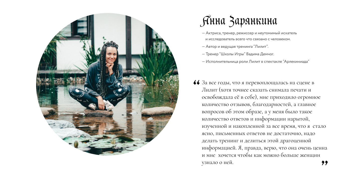 Слишком много Евы или Лилит вызывает интоксикацию женской сущности. А выбирать между ними всё равно что выбрать есть или спать (ну как-то так, на самом деле). И два года назад увидела я истинную Лилит в лице @zaryankina_anna и влюбилась я в необузданность и искренность, поражающую до глубины моей тоскующей души. И спустя время создался ею невероятной мощности двухдневный тренинг по работе с этими двумя дамами.